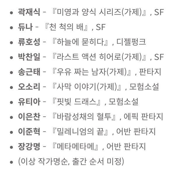 * 9월 20일 현재 SF어워드 장편 최종심사 목록은 다음과 같습니다. [링크]