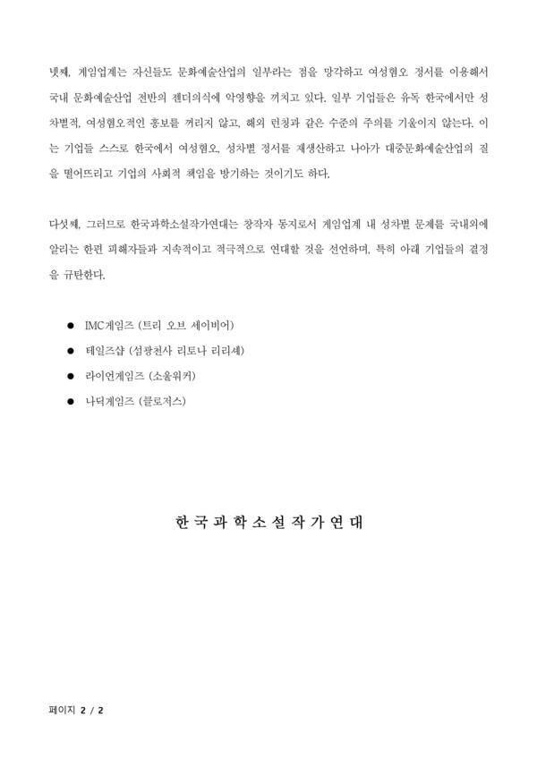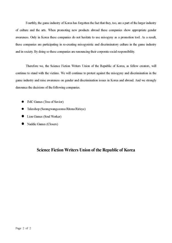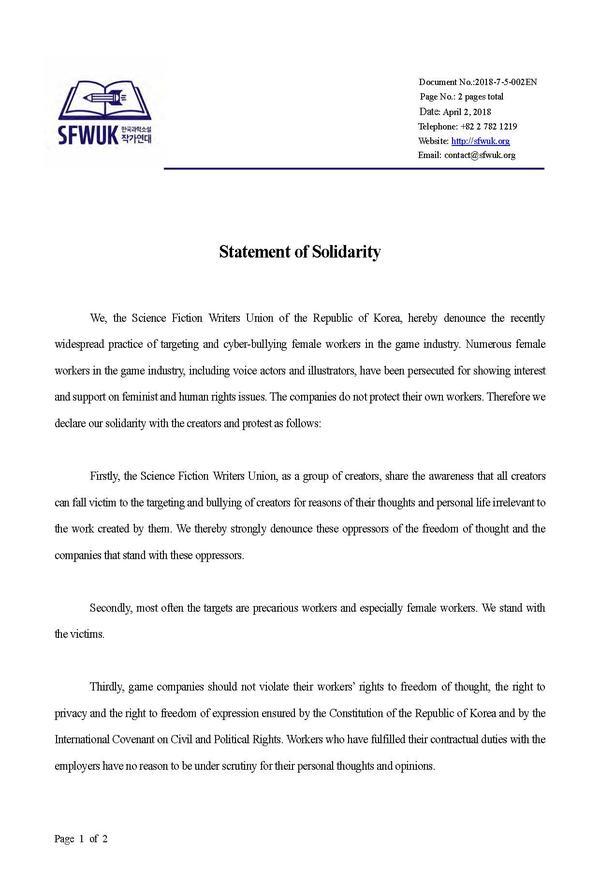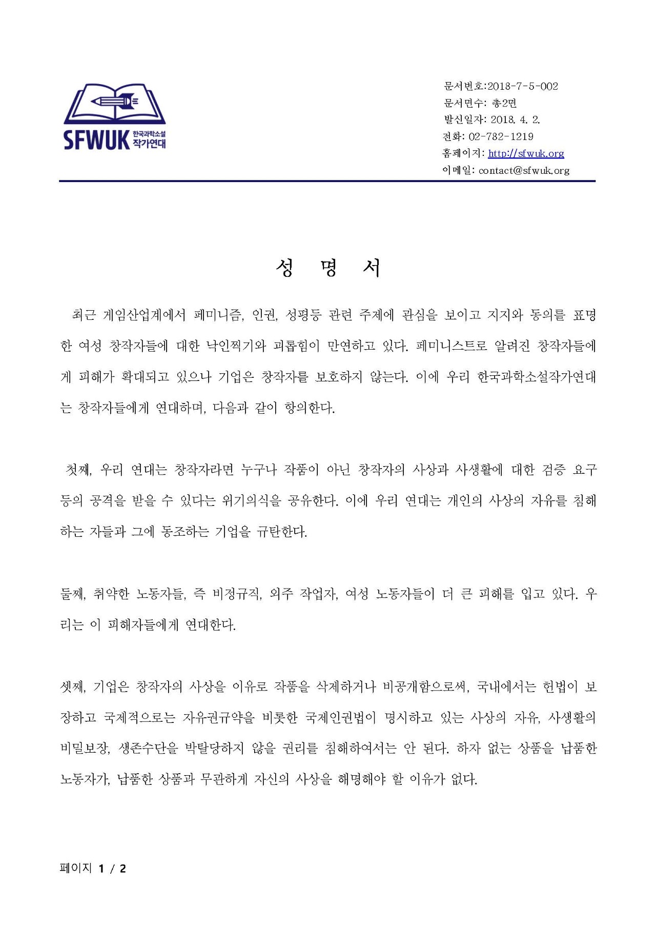 | 한국과학소설연대 성명서 발표 (2018/01/25) (0) | 2023.06.11 |