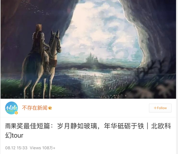 예. 여전히 꽤 좋은 조회수라고 생각합니다만(지금 예시로 든 작품들 다 올해의 화제작이라서) 메일 보낸 분이 더 의미있게 생각한 점은 설립자와 SF작가 Zhao haihong의 호평이 아니었을까 싶어요. 정말 숫자로는 감이 안 오는 중국입니다.