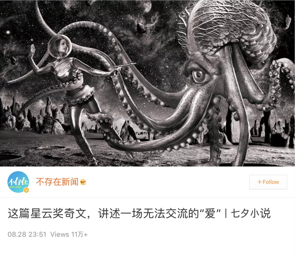 8월 12일에 올라간 작품으로 현재 부존재신문 웨이보의 메인입니다.