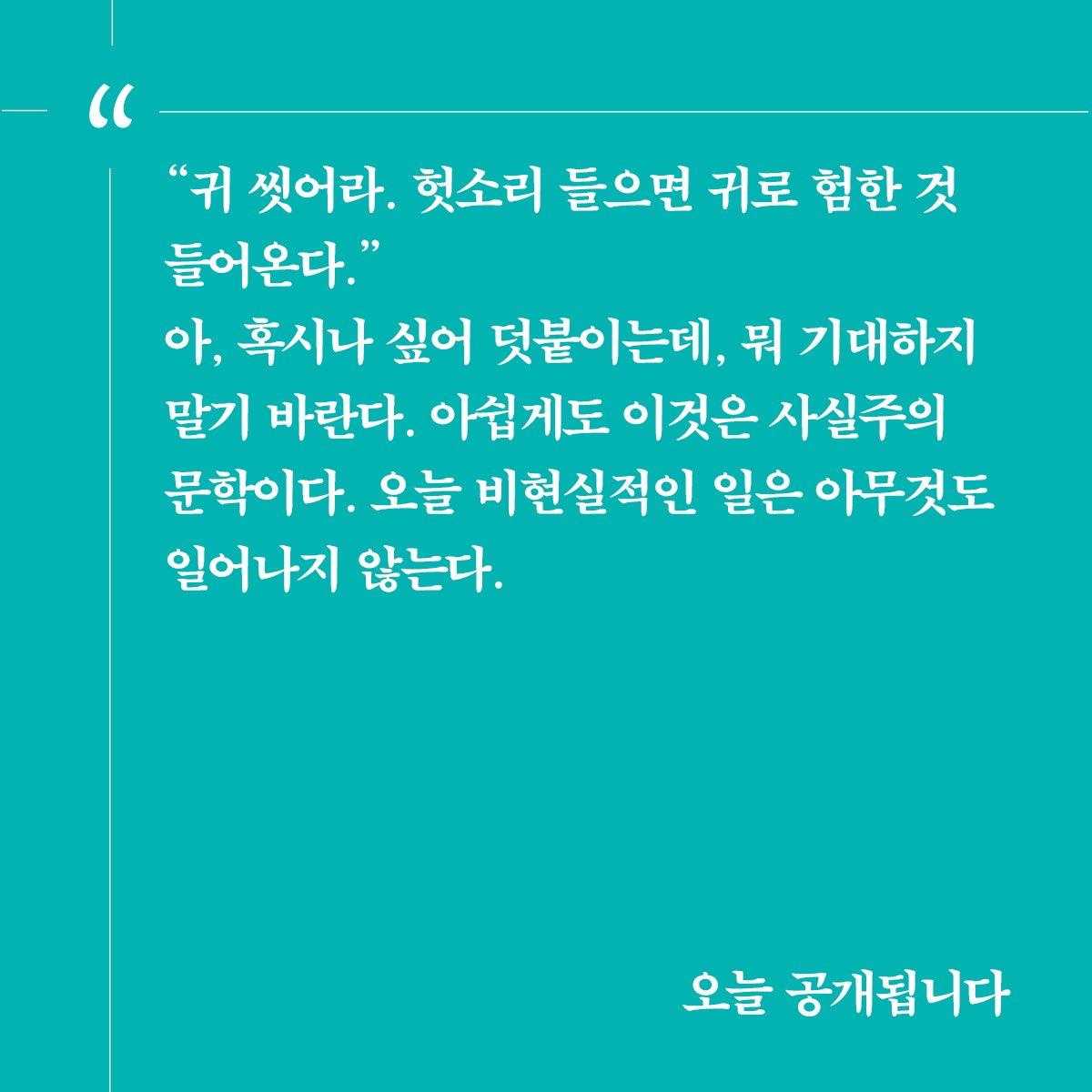 "아쉽게도 이것은 사실주의 문학이다. 오늘 비현실적인 일은 아무것도 일어나지 않는다"