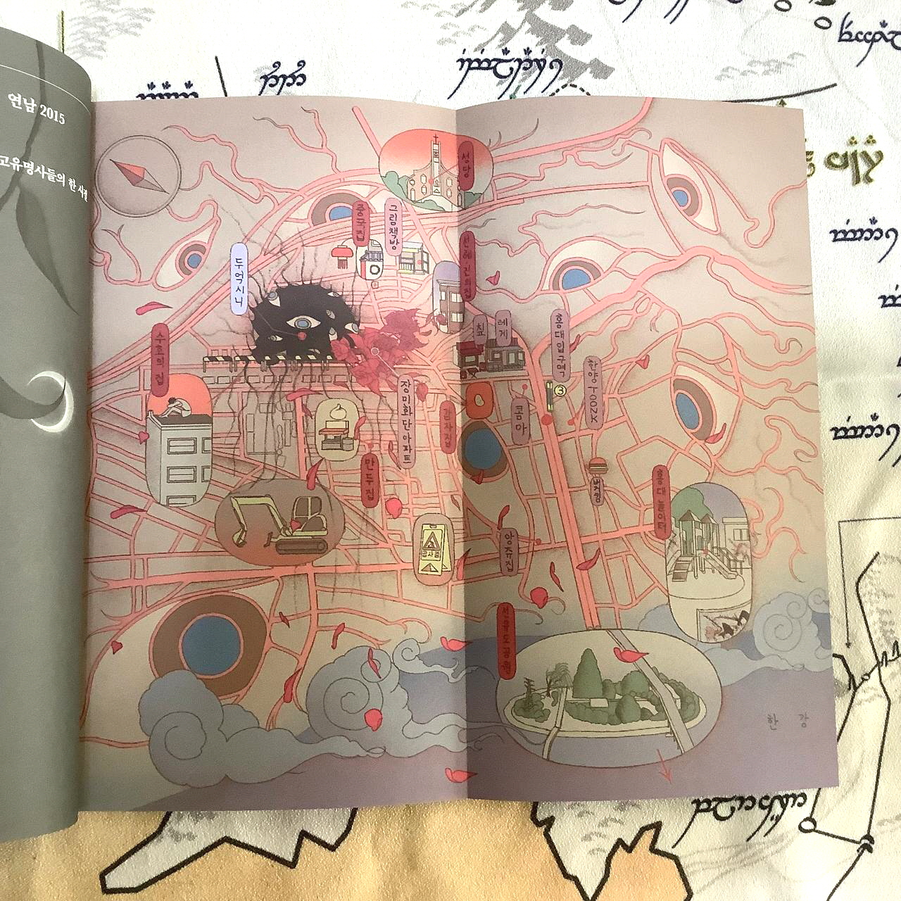 연남동 지도를 보니 울컥하고 아련하네요. 소설을 쓰기 시작했을 때는 모두 거기 있었는데, 지금은 거의 남아있지 않아요. 그래도 그 추억을 소설로 보존할 수 있어 다행입니다.