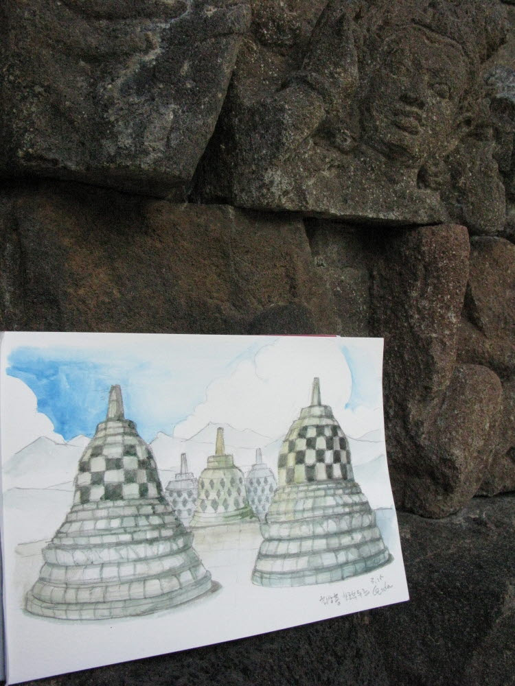 보로부두르. 눈에 닿는 곳마다 예술이라 사진으로도 그림으로도 글로도 담을 수가 없다...