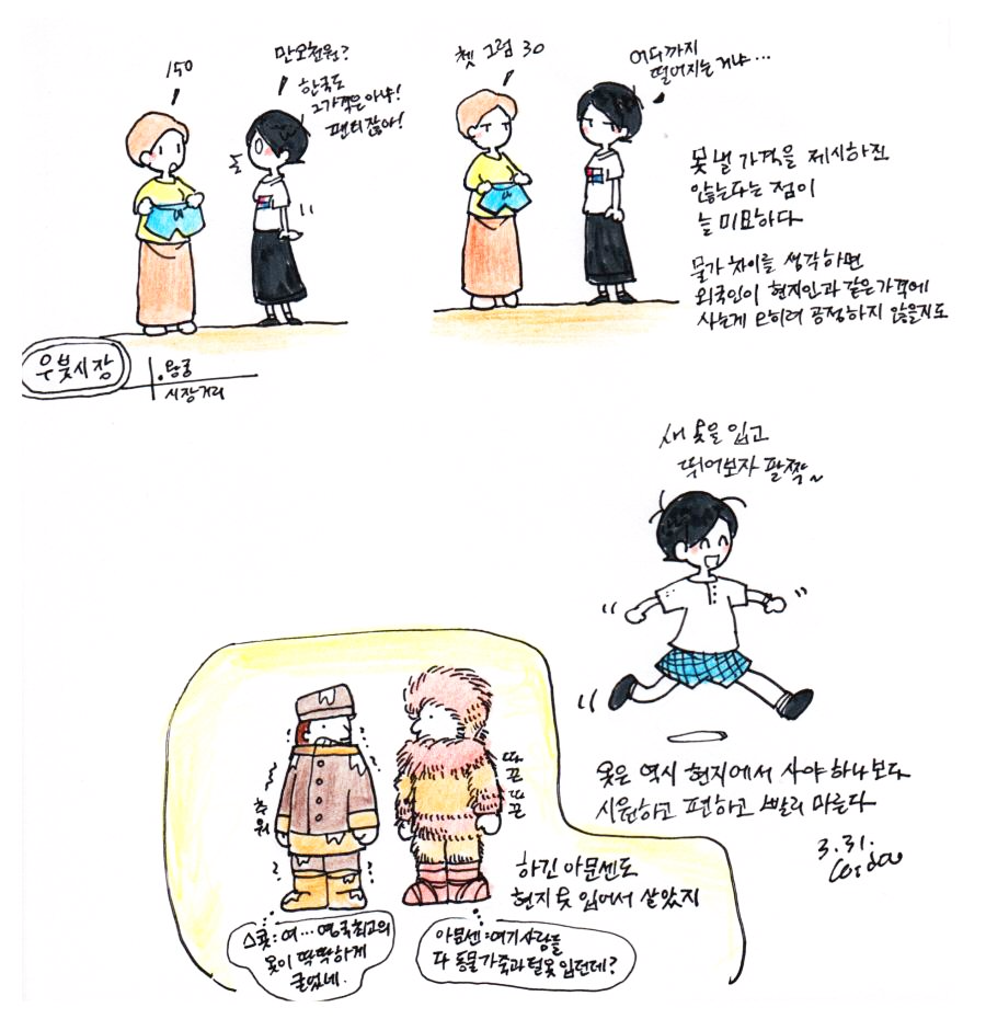 집에 돌아와서 색칠하고 첨단기기(스캐너)의 도움으로 올린 한층 발전한 여행기(?)