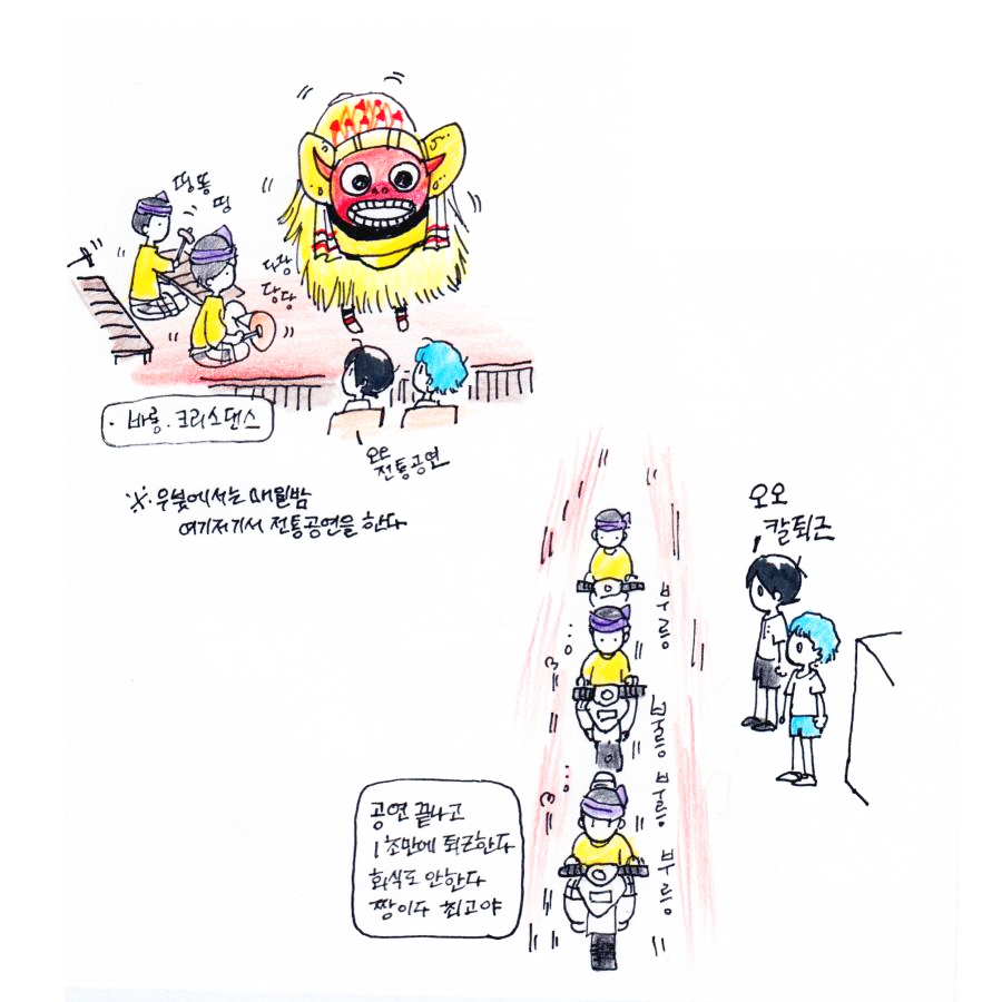 펜으로 그리면 수정이 안 된다는 걸 깨닫고(왜 이제야?) 이후론 연필로 그리고 숙소 와서 수정함.
