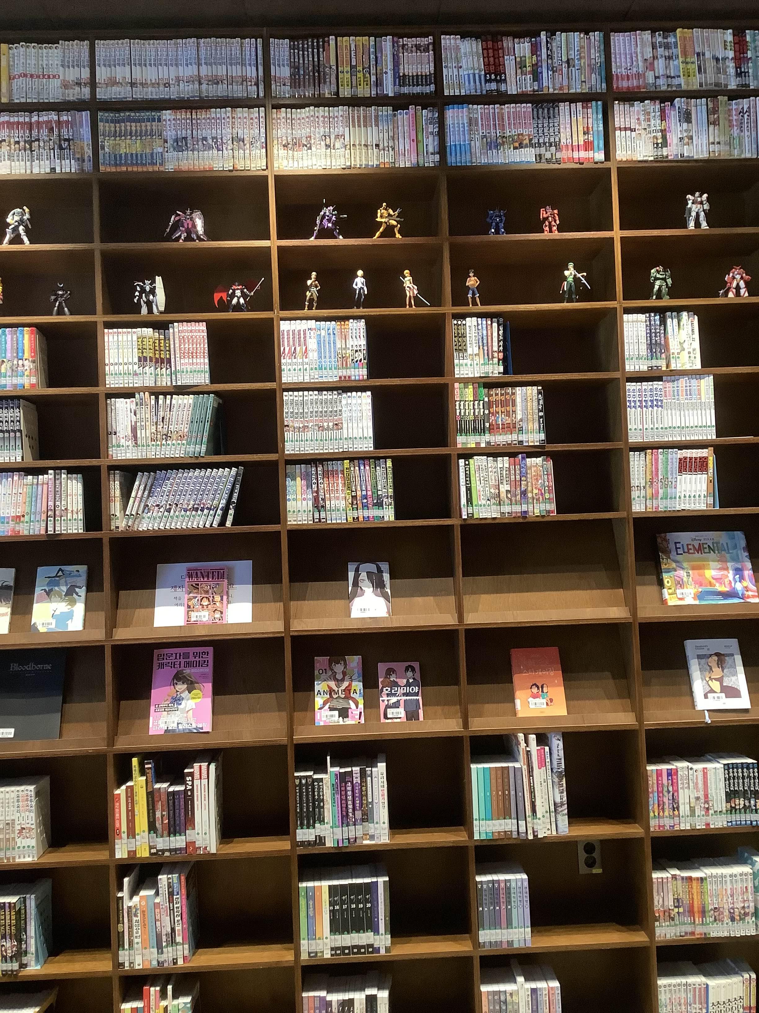 건물 로비에는 졸업 전시로 만화 포스터가 가득 채워져 있고, 학교에 웬만한 큰 도시 중앙도서관을 방불케 하는 거대한 만화도서관도 있고요. 내 생전 이렇게 많은 만화를 한 자리에서 본 건 처음인 듯합니다. 평범한 휴게실에도 드높은 만화 서가가 채워져 있고 말이지요. 다른 대학은 시사만화도 만화라고 못 들어오는데……! 푸드 전공이 있어서 학생이 운영하는 식당도 있습니다. 피자가 정말 맛있더군요. 고양이도 많아요. 눈이 쏟아지니 교정에는 토토로 눈사람이 세워지더군요. 꿈의 학교입니다.