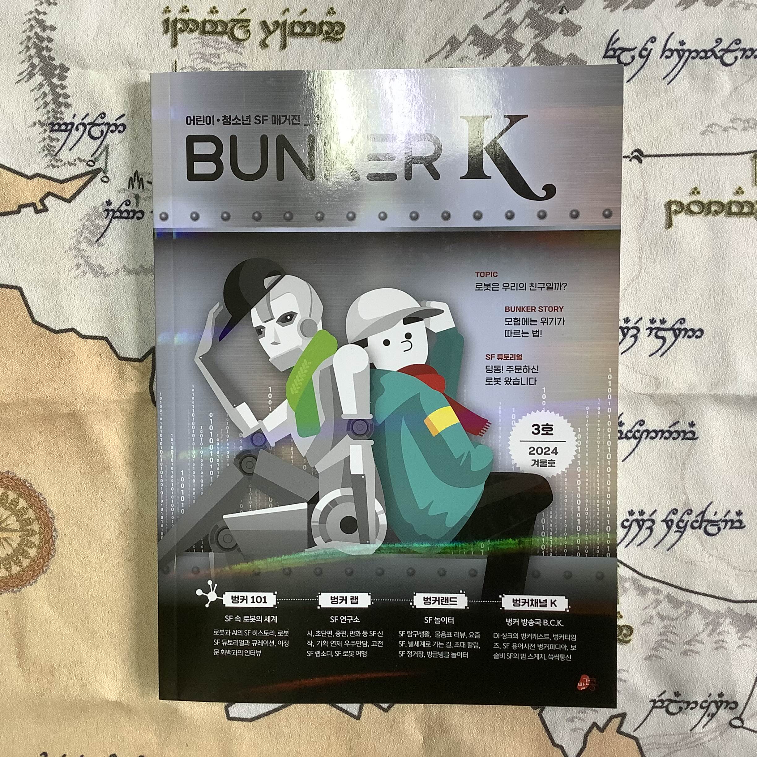 어린이 청소년 SF 잡지 벙커 K 3호, 2024년 겨울호에 초단편 SF 동화 “느림보 두루와 중요한 임무”를 실었습니다. 이번 호는 로봇 특집이네요.