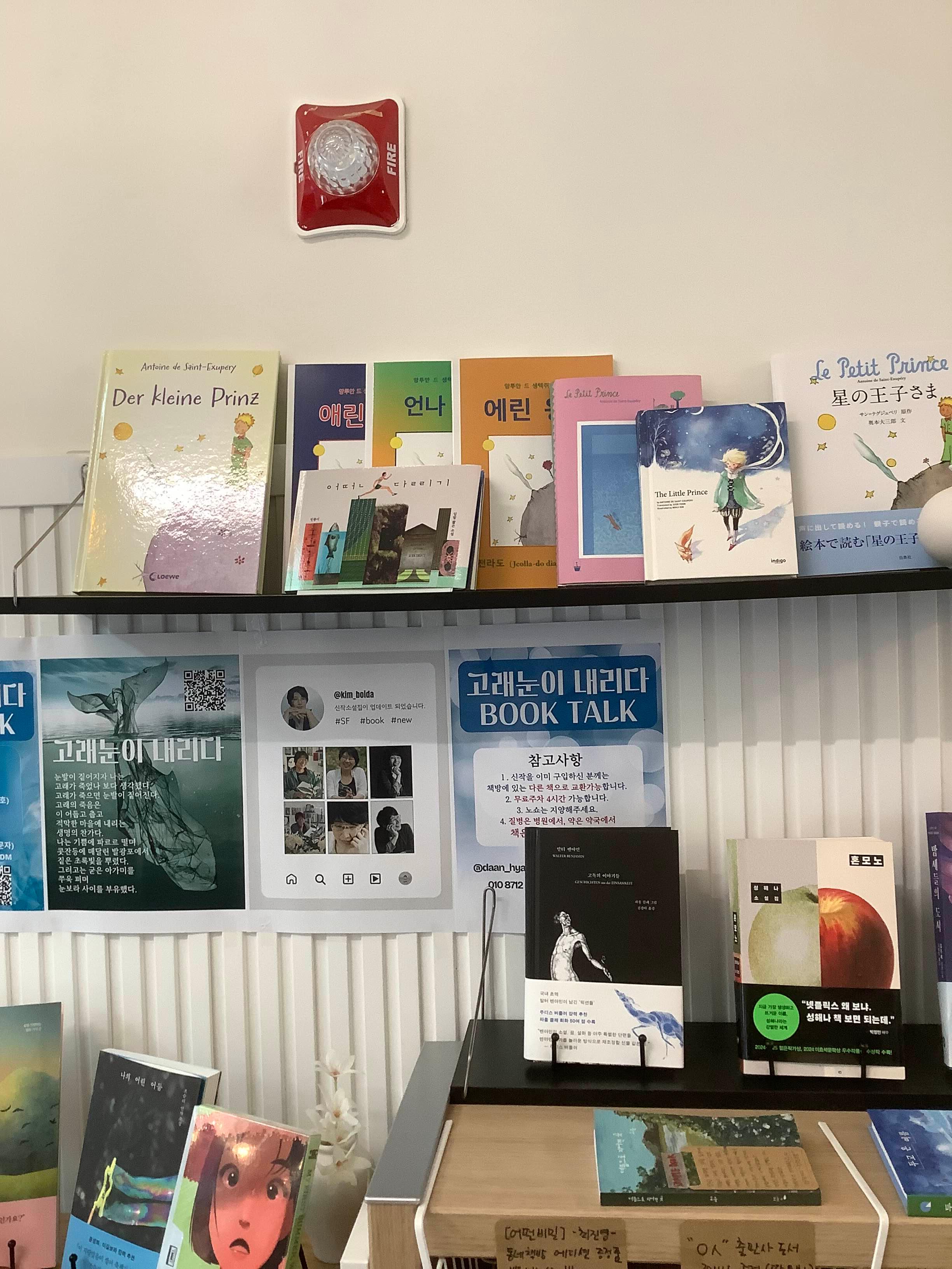5) 어린왕자 구역이 있어요! 파느냐고 물었더니 콜렉션이라고… 아니, 파셔야지! 북토크 오신 분들이 지기님께 다른 나라판 어린왕자를 선물로 주고 계셔서 깜짝 놀랐네요. 저도 예쁜 어린왕자 책 모으지만 아티스트별로 모았지 해외판 모을 생각은 안 해봤는데 😅