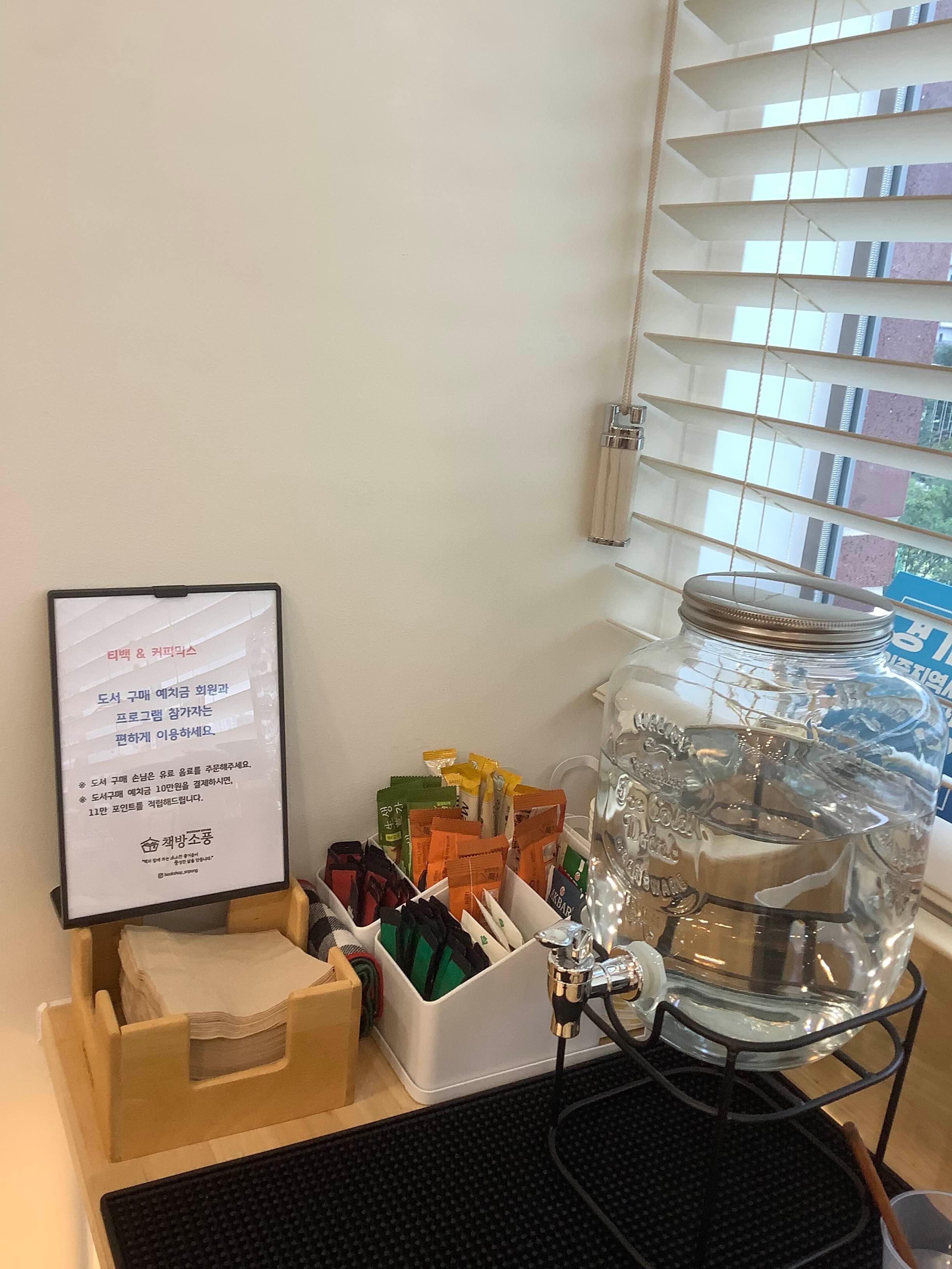 독서를 격려하고 응원하는 여러 공지문, 포스터가 인상적이었습니다. 독서모임과 북토크가 활발한 곳으로 보입니다. 비치용 책이 있어 음료 구매 후 읽을 수 있습니다.