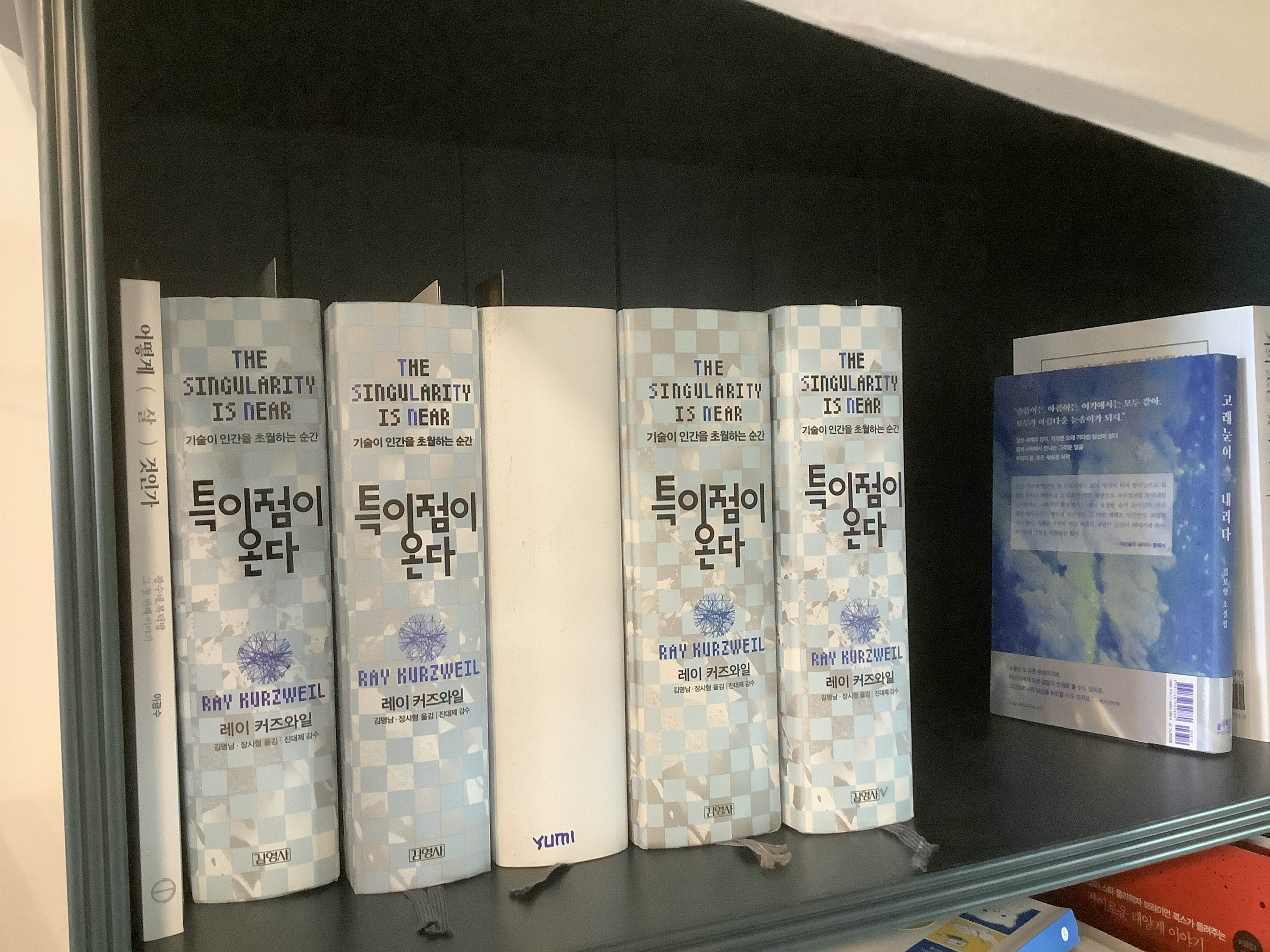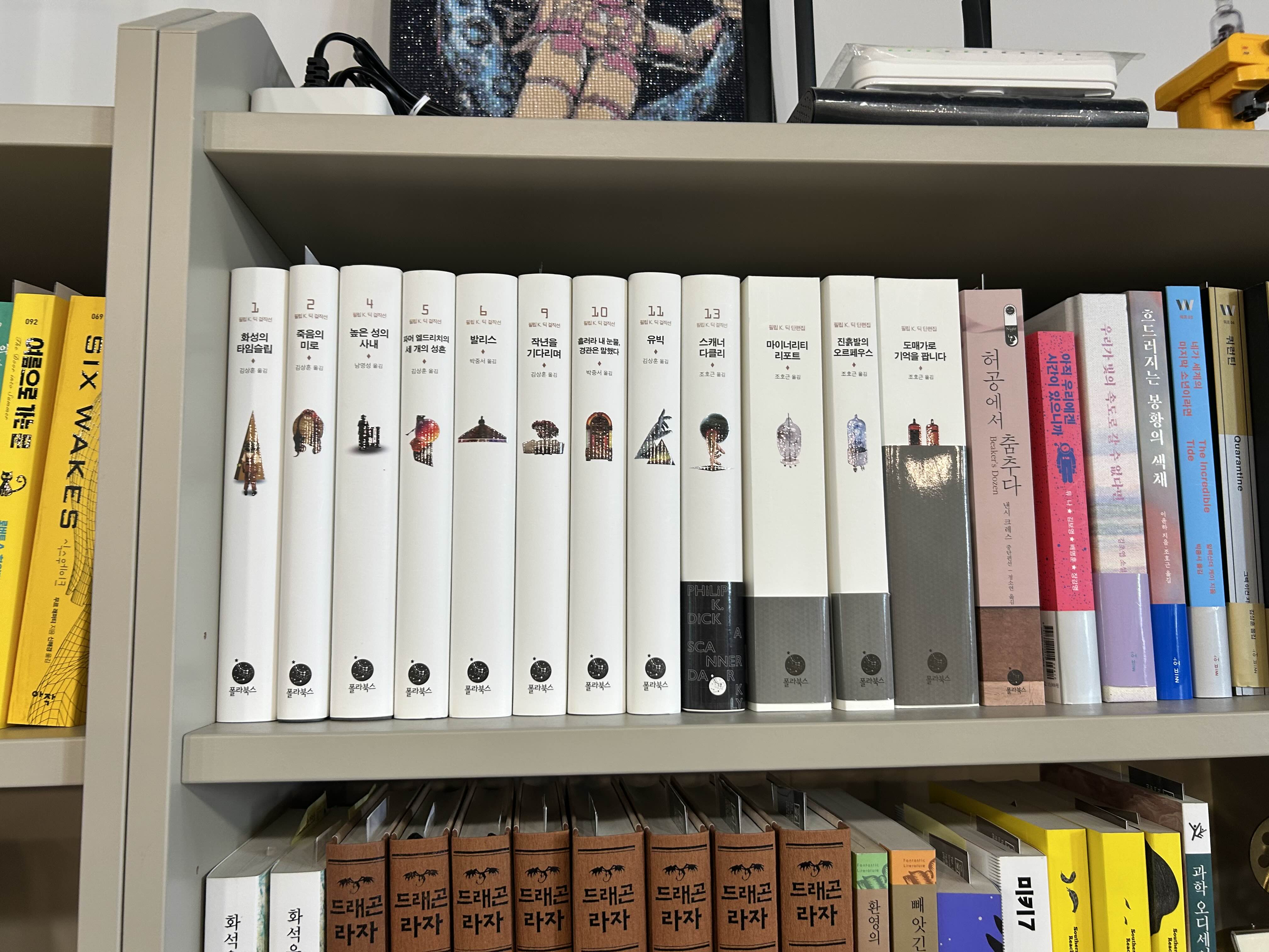 4. 플라뇌즈 이후로 가장 SF 비율이 큰 서점이었습니다.(당연한가!) 과학책 반 SF 반. 필립K 딕 전집이 있는 것에 깜짝 놀랐는데, 그 외에도 근본 있는 서가였습니다. 우주 전쟁, 프랑켄슈타인, 모로박사의 섬, 로섬의 유니버설 로봇 등등… 고전을 충실히 섭렵하라는 의지가 느껴집니다.