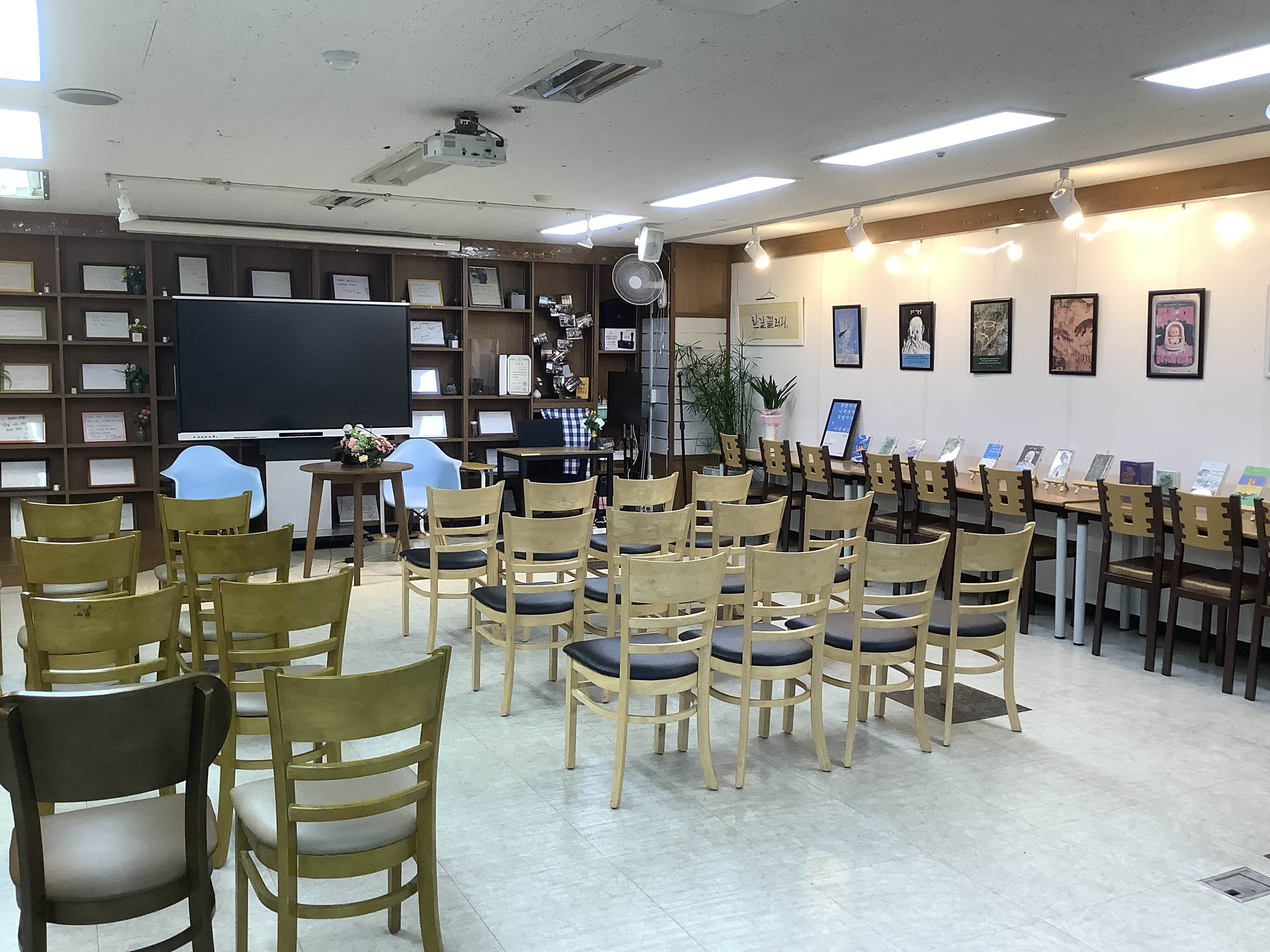 7. 쉼터가 잘 마련되어 있습니다. 같이 공부하거나 책을 읽는 사람들이 눈에 띕니다.