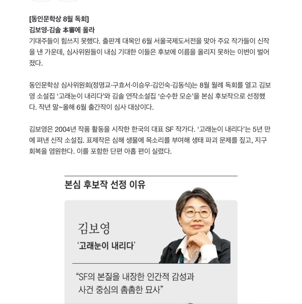 촘촘한 묘사, 우연의 연쇄 문학을 누비다 동인문학상 8월 독회 김보영·김솔 本審에 올라