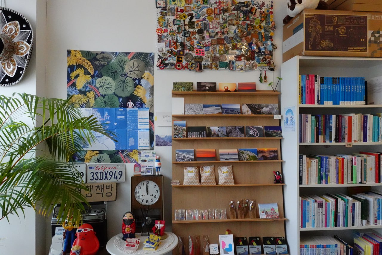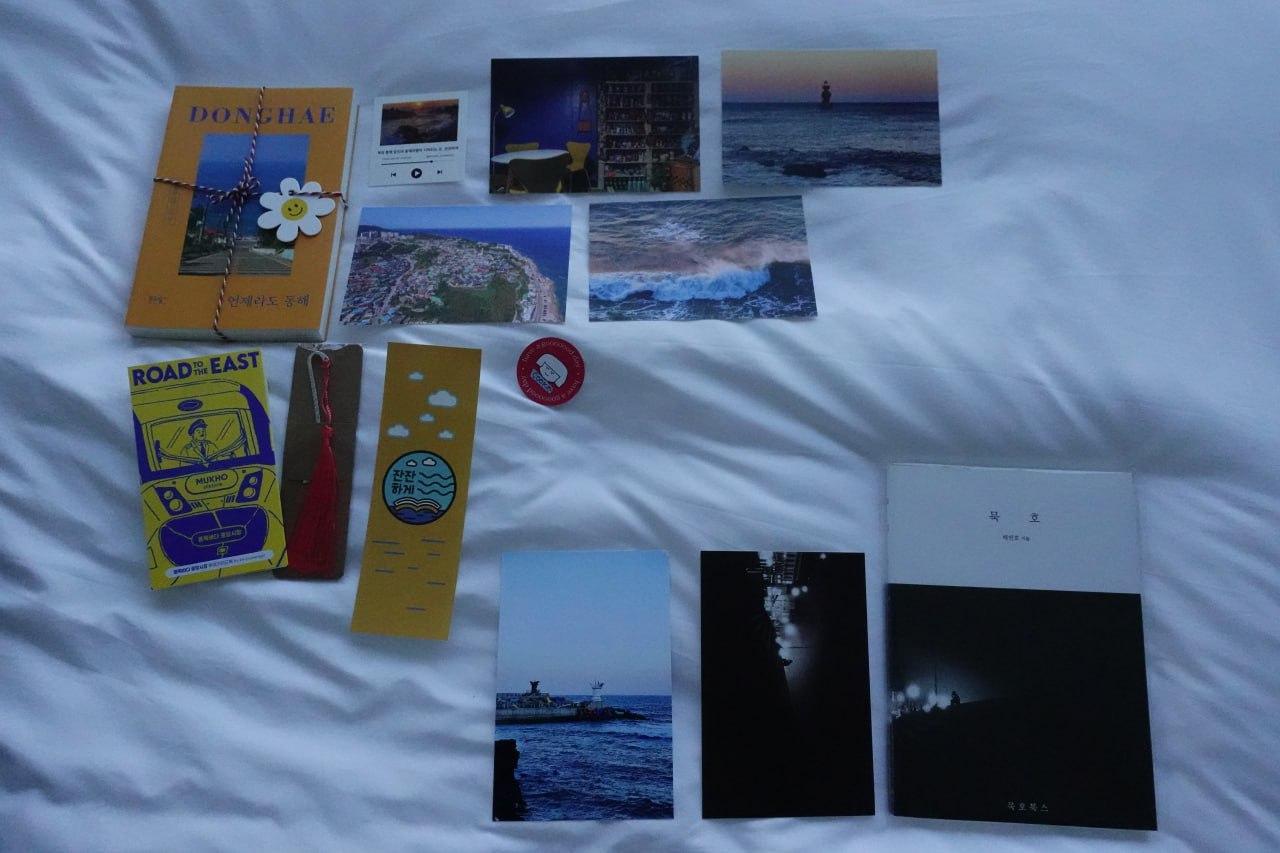 여행가이신 부부가 운영하는 여행서 전문 서점입니다. 여행 중에 만나셨고 묵호가 마음에 들어 정착하셨다고 해요. 서점지기이자 여행가이자 동해를 사랑하시는 채지형 씨의 <언제라도 동해> 책을 사면 엽서와 굿즈도 잔뜩 받고, 추첨기 돌려서 추가 사은품도 받을 수 있어요. 지역 특색 독립 서적이 많이 보입니다.