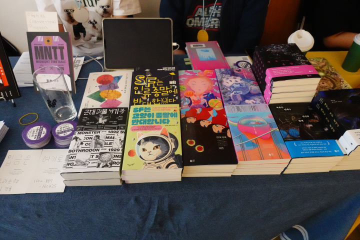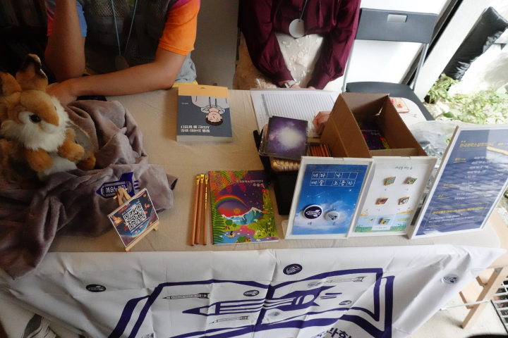4. 5. 6. 갈매나무, 구픽, 벙커 K, 과학소설작가연대 부스, 그리고 깜짝이야! 초상화 그리는 화가께서 자리하고 계셨습니다. 이야기 들으니 플라뇌즈가 독서모임에서 집어오셨(혹은 스스로 집혀서 오셨)다고…