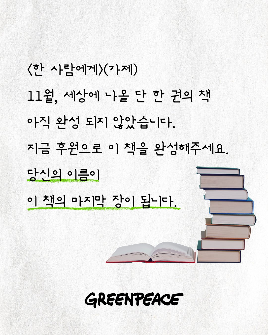 그린피스에 후원하고 책도 받아가세요.
