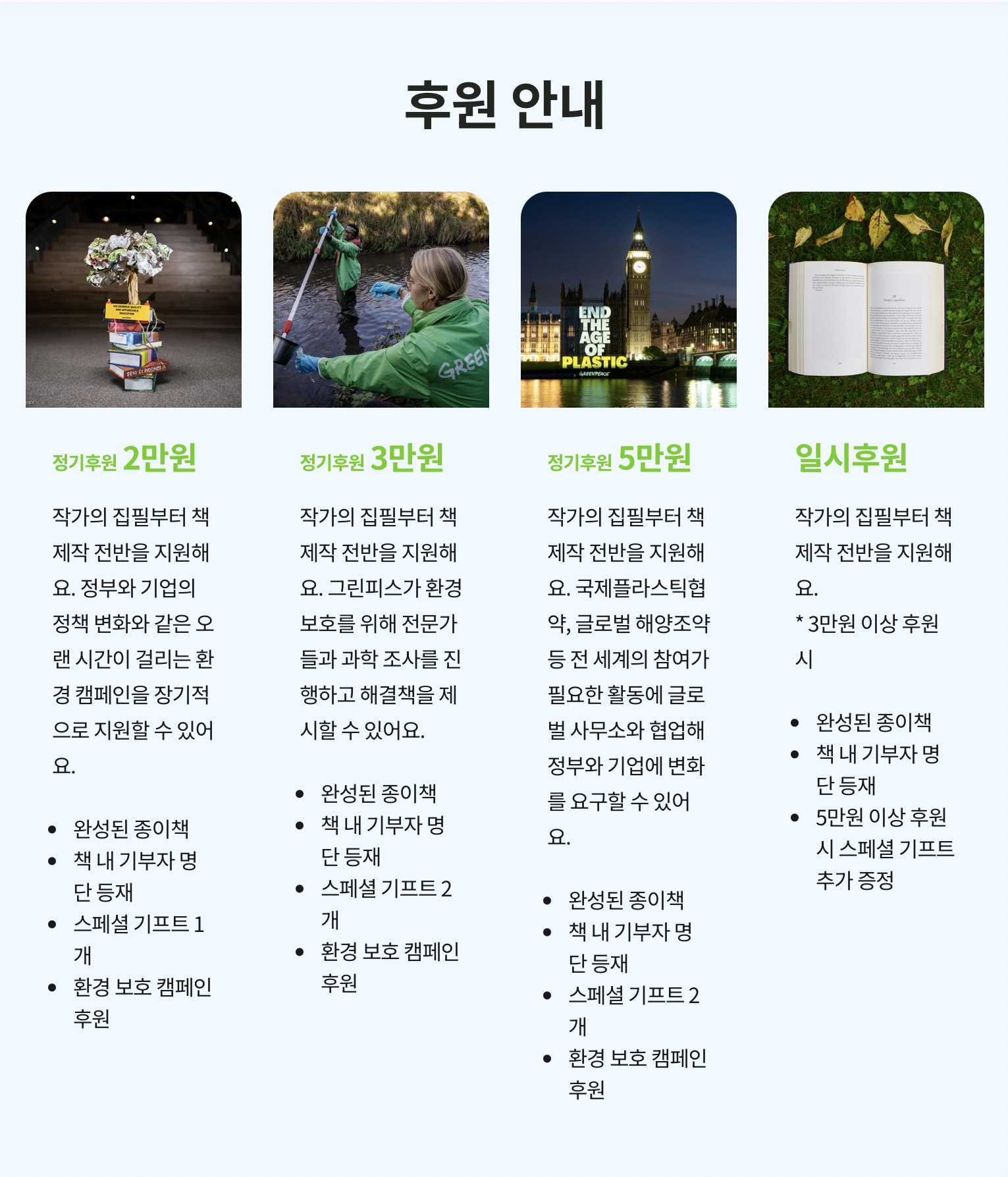 그린피스에 후원하고 책도 받아가세요.