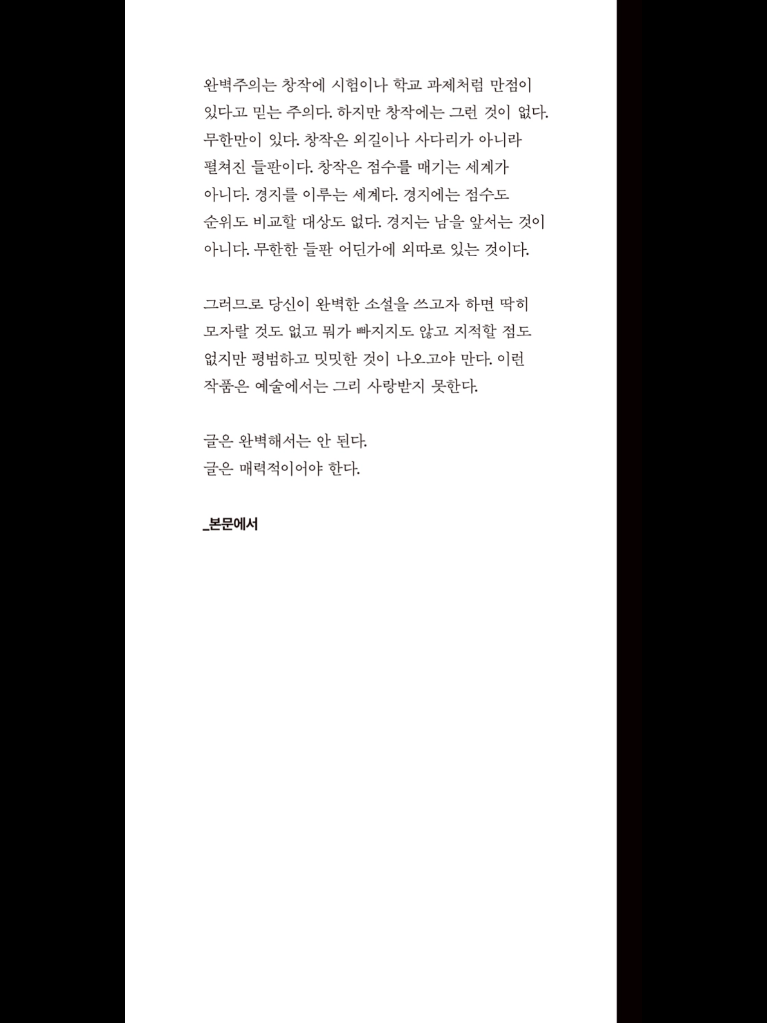 또한 기본적으로는 초보자를 위해 썼다. 전문가를 위한 책은 내가 평생 쓸 수 있을지 의문이다. 그래도 내가 지금껏 읽어온 작법서에서는 보지 못했거나 잘 정리되지 않았던 것을 말하고자 했다.