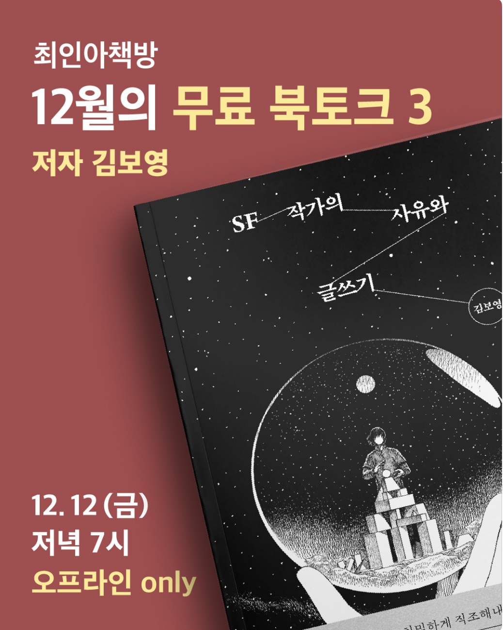 12월 12일, 최인아 책방에서 “SF작가의 사유와 글쓰기” 북토크를 합니다.