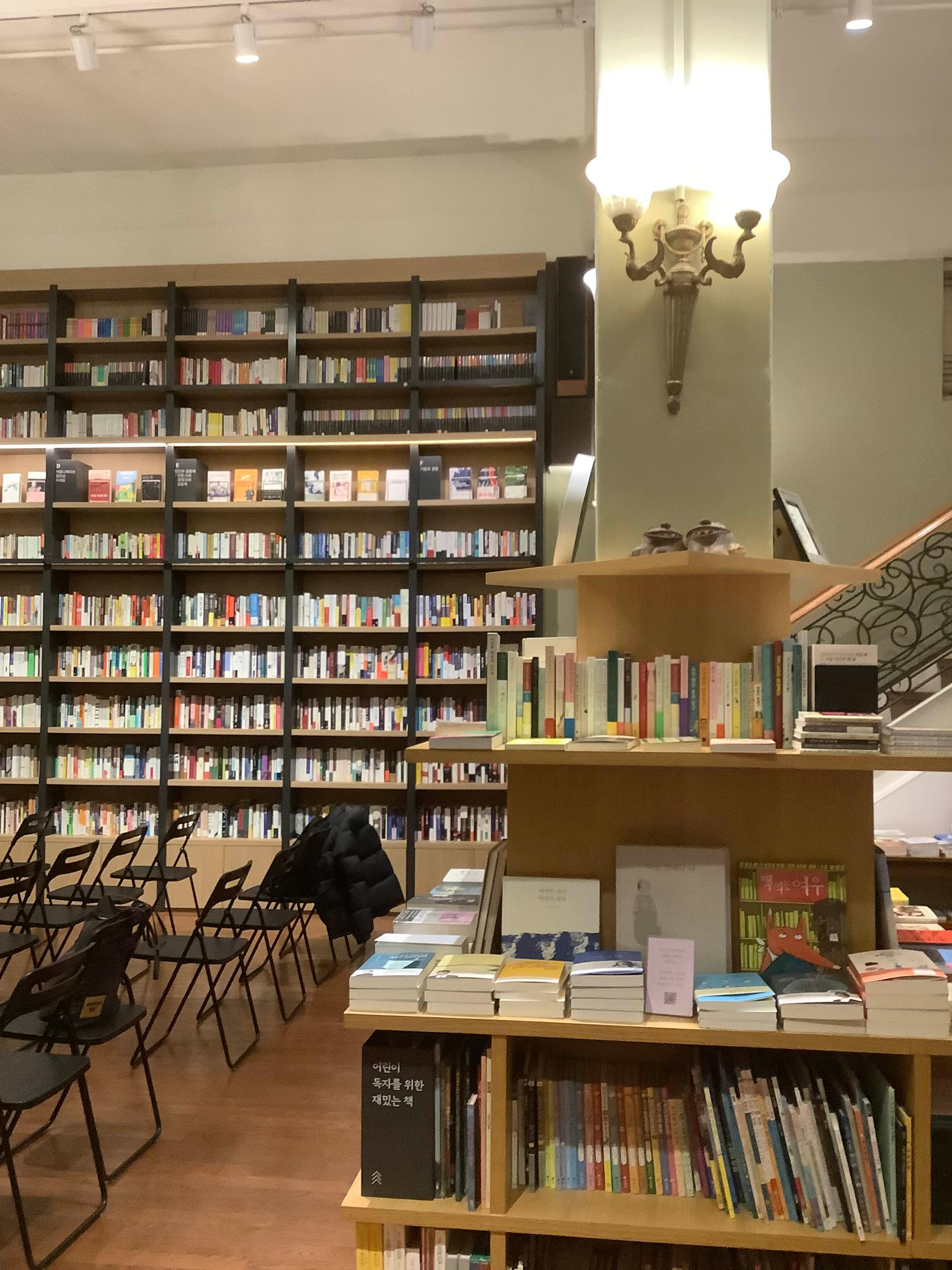 2. “지금껏 가본 서점에 비하면 여기는 오페라 하우스로군요.” 하니 사장님이 웃으십니다. 교보문고만큼 큰 데다 천장이 높고 인테리어가 고풍스럽고 우아합니다. 오페라 하우스라는 말이 농담이 아닌 것이, 주기적으로 음악회가 열린다고 합니다.