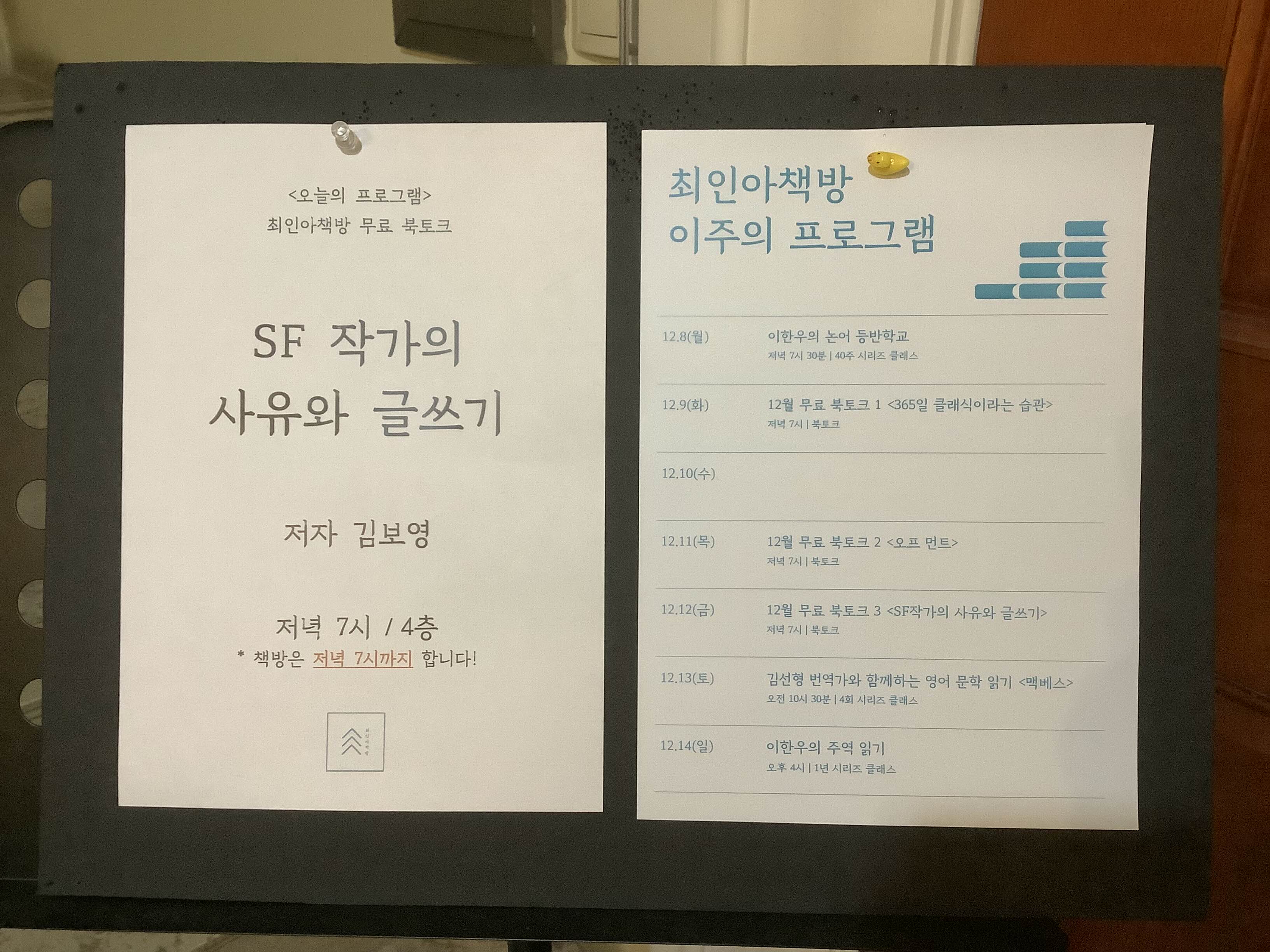 하염없이 늦은 25년 12월 12일 최인아책방 [SF 작가의 사유와 글쓰기] 북토크 후기 :