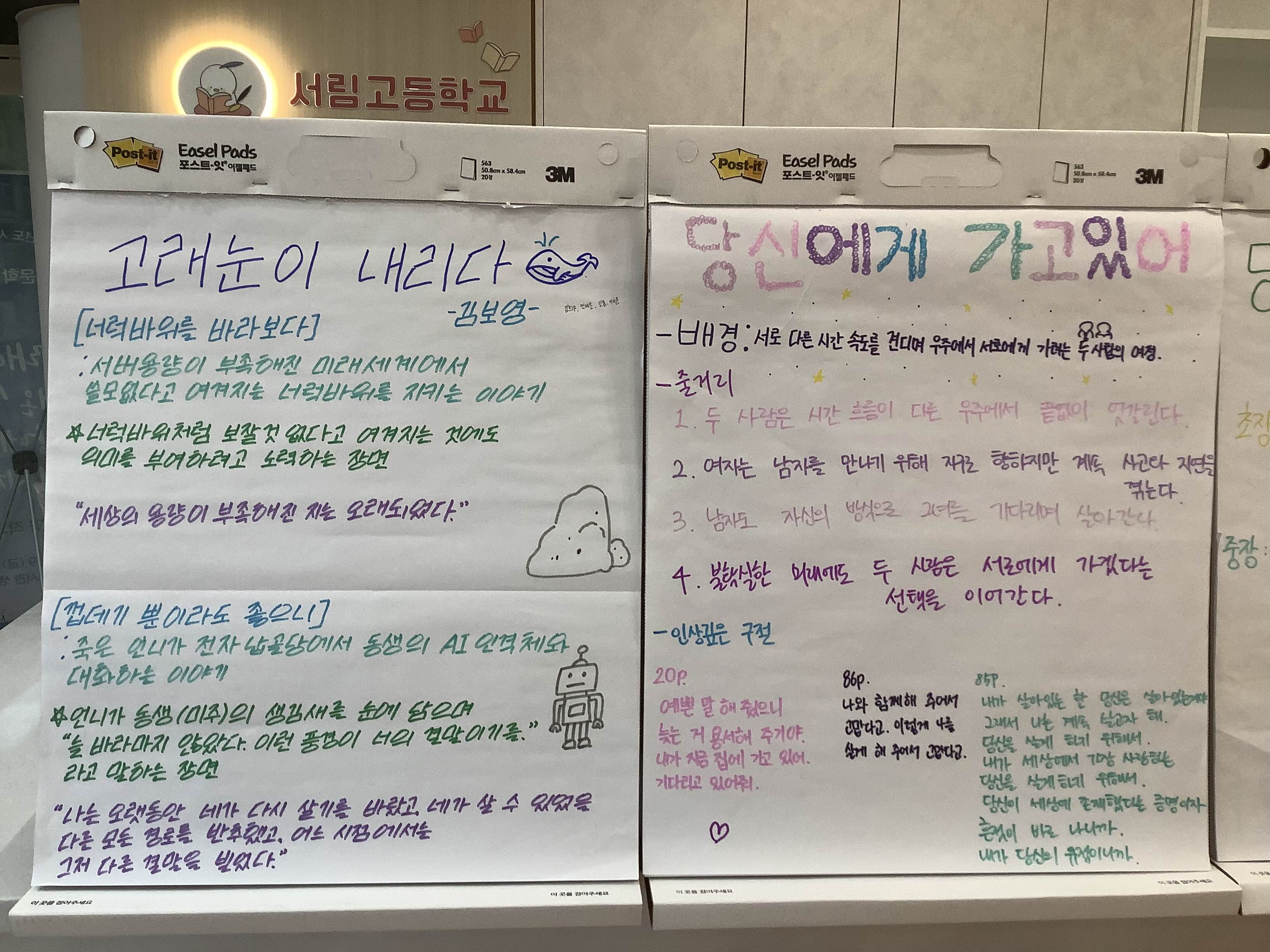 선생님들도 학생들도 집중하며 들어주셨고, 내내 다정하게 대해주셨고, 학생들은 제 취재에도 시간을 투자해 진지하고 성실하게 답변해주셨습니다. 제 청소년 소설이 긴 시간… 정도가 아니라 수 년간… 막혀 있었는데, 명랑한 학생들을 직접 만나니 비로소 트인 기분입니다. 정말 감사하고, 계속 기억에 남을 듯합니다.