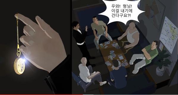 웹툰은 완전히 성인용이고(피와 살과 광기가), 동영상은 15금 정도 됩니다.