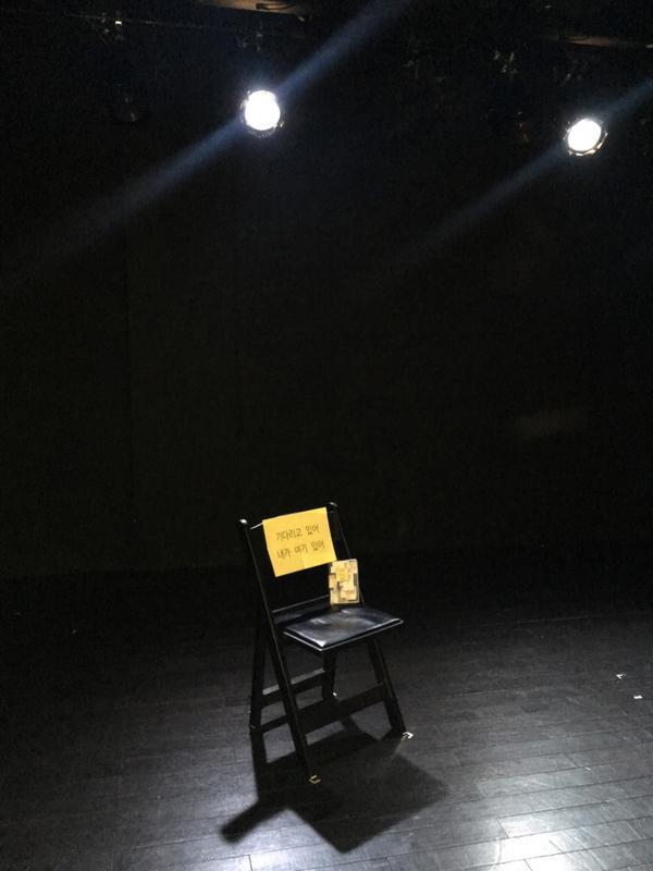 무대에는 배우가 앉을 의자 하나뿐. 혹시나 했지만 정말로 배우 한 명의 모노드라마.