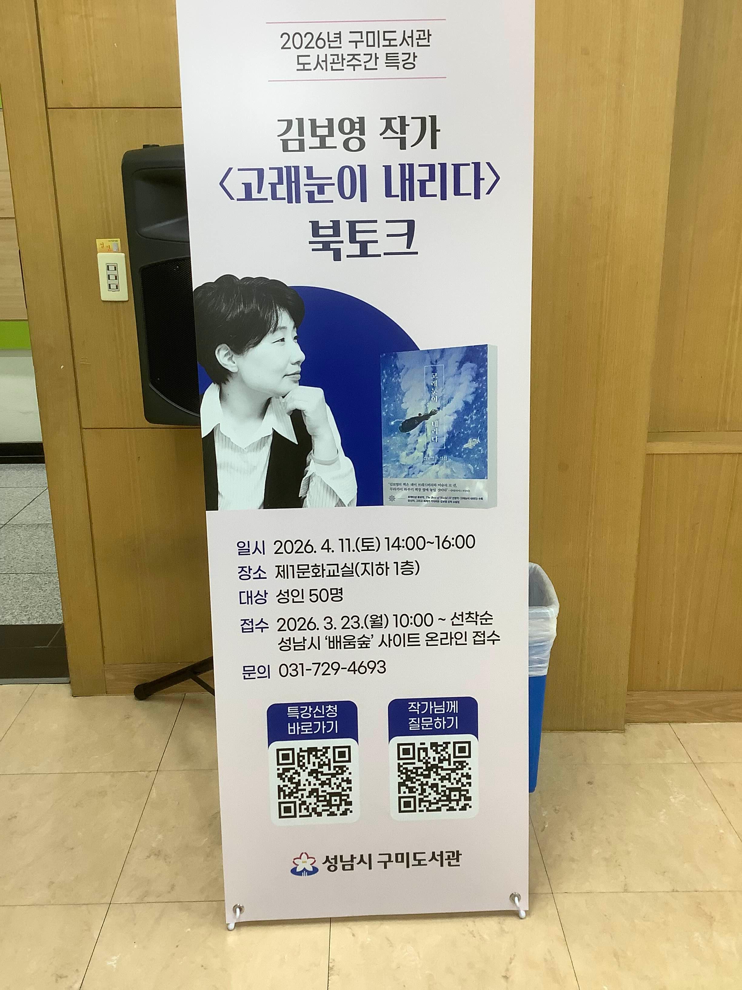 분당구 구미도서관에서 [고래눈이 내리다] 북토크를 했습니다.
